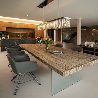 Druhý prvok určuje samotnú stavbu: drevo! Ekologický materiál bol veľkoryso použitý v interiéri aj exteriéri. Povrchová úprava ADLER Lignovit Lasur vo farebnom odtieni Naturgrau (prírodná sivá) a následne ADLER Lignovit Platin vo farebnom odtieni Pyritgrau (pyritová sivá) dodávajú fasáde zo smrekového dreva umiernený, prirodzený vzhľad. Vnútri vytvárajú ľahké drevené prvky hrejivú atmosféru: nástenné akustické panely Lignotrend z jedle bielej s povrchovou úpravou ADLER Lignovit Interior UV 100, akustické podhľady od Ladenburger alebo povrchy stien a dverí zo smreku a jedle, natretých produktom Lignovit Interior UV 100. Veľké okná určené aj na sedenie prinášajú do budovy mnoho svetla a zároveň ponúkajú pútavé výhľady. Aby na to použité dubové drevo vyzeralo a pôsobilo úplne prirodzene, ale napriek tomu bolo optimálne chránené, použili v stolárstve Blüml na impregnáciu drevohliníkových okien produkt ADLER Aquawood TIG HighRes a nalakovali ich náterom s prírodným vzhľadom ADLER Aquawood Natureffekt. Vďaka odolným, na pohmat príťažlivým materiálom a vysokému energetickému a kvalitatívnemu štandardu budovy nemávajú deti zadreté triesky či studené nohy ani pri behaní naboso, čo Sebastian Kneipp toľko oceňoval a propagoval. Niet divu, že sa deti vo svojom novom dome cítia výnimočne dobre!